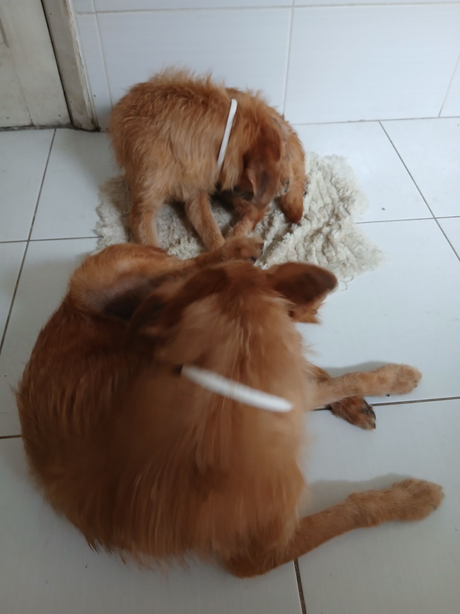 Gêmeas (elas só atendem por esse nome!) são irmãs. Caramelas com notas de fiapo de manga, divertidas, carinhosas e muito amigas. Nunca conviveram com crianças. Não aceitam outros doguinhos! É uma adoção conjunta! Elas fazem absolutamente tudo juntas. Estão passando um período temporário comigo, por que obrigo onde moravam fechou.